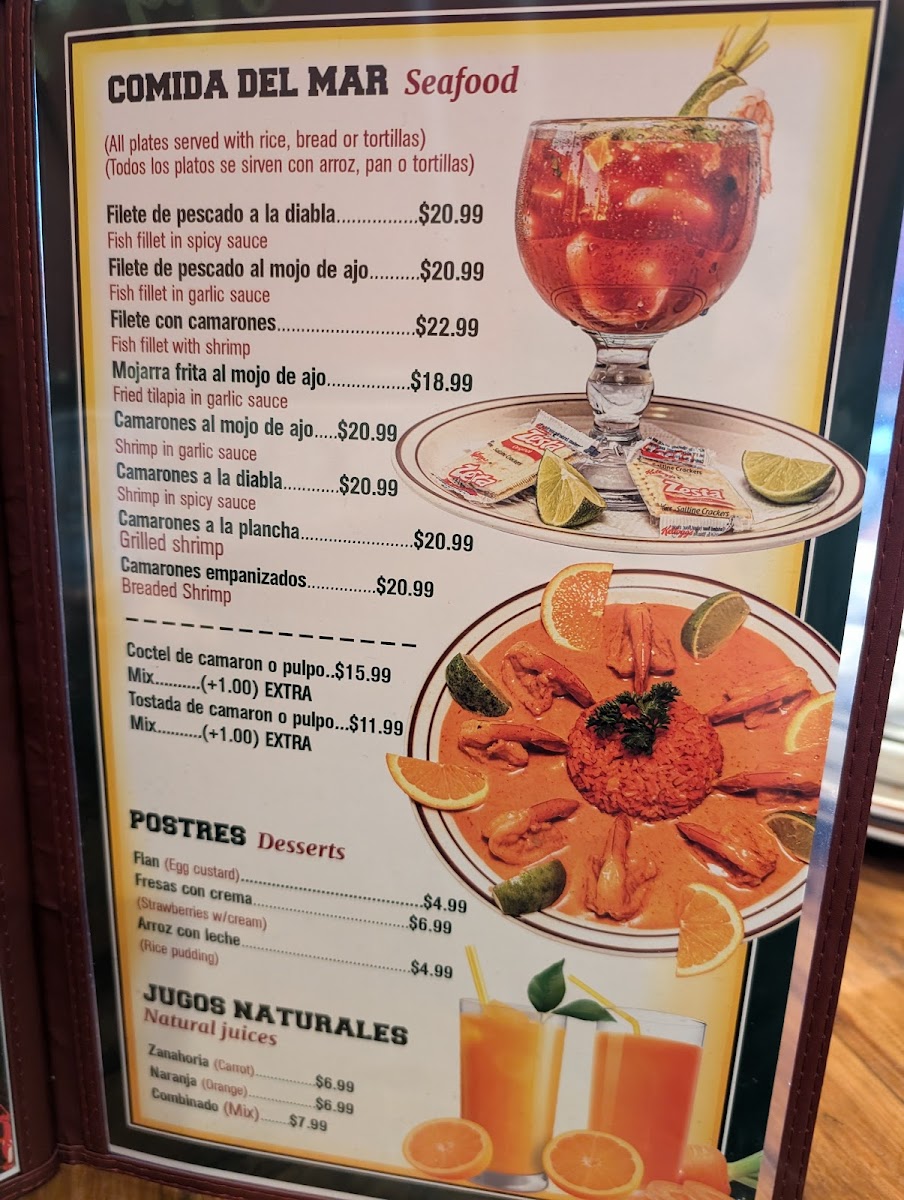 Shrimp, cecina, chorizo, chicken, cactus, cambray onion, jalapeño, queso fresco & special sauce. Served with rice, beans and tortillas.
