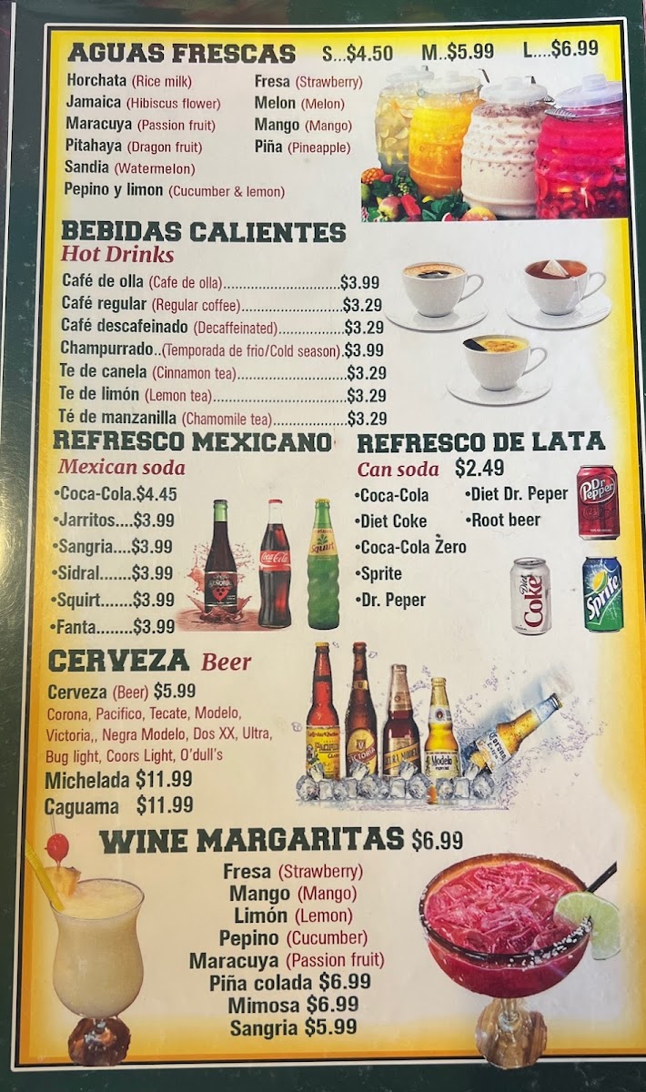 Eggs with Mexican sausage, ham or bacon. Served with beans or french fries and tortillas.