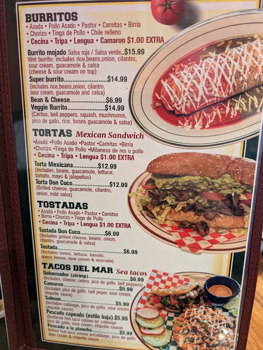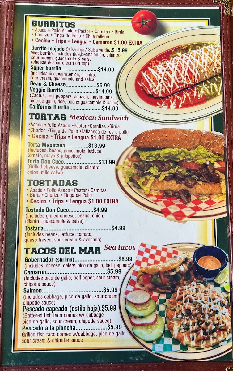 Includes cilantro, onion, mild sauce, avocado, crema.