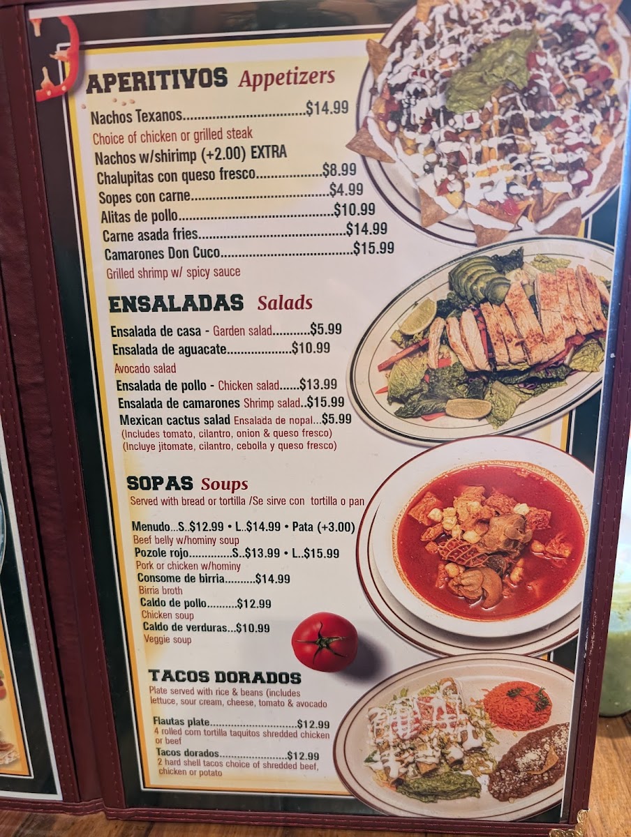 Pork or chicken soup w/ hominy. Served with tortillas or tostadas.